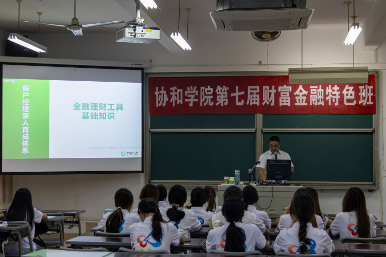 特色班首讲课程《金融理财工具基础知识》,由中国人寿渠道总监陈家焰担任主讲人。陈家焰总监凭借其在金融行业多年的从业经验与专业积淀,从金融理财的底层逻辑切入,系统梳理了储蓄存款、债券、基金、保险等主流金融理财工具的核心属性,深入剖析各类工具的风险特征与收益规律,并结合金融行业实际案例,阐释“风险与收益匹配”、“分散投资优化配置”等核心理财原则,为同学们搭建起金融理财知识的基础框架。