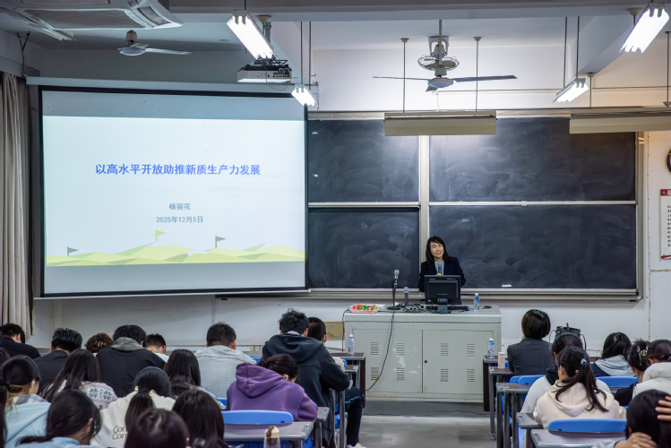 12月5日下午,中国政法大学商学院杨丽花教授莅临我校,在B3-101教室为金融学、金融工程专业的同学们带来了一场主题为“以高水平对外开放助力新质生产力发展”的前沿讲座。窗外冬日暖阳,室内座无虚席,金融学子们对这场融合国际视野与专业深度的知识盛宴充满期待。