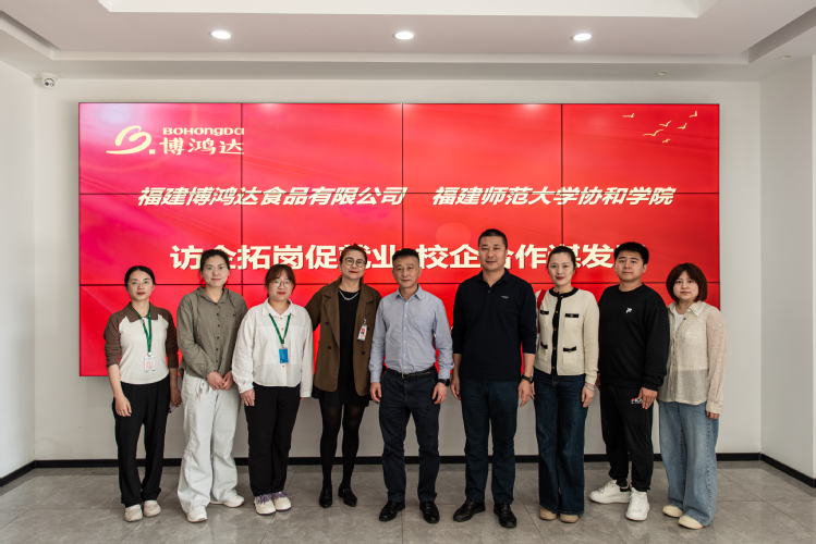 为深化产教融合,精准对接企业人才需求,拓宽毕业生就业渠道,4月10日上午,福建师范大学协和学院黄滨副院长带领经济与法学系、管理学系相关负责人赴福建博鸿达食品有限公司开展访企拓岗专项活动。
