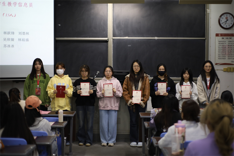 教学信息团指导老师对受表彰的同学表示祝贺,并对新聘任的信息员提出了工作要求。她强调,学生教学信息员应认真履行职责,客观、公正、真实地反馈教学信息,加强工作中的协调与沟通,为学院提升教学质量、改善学习环境积极发挥作用。