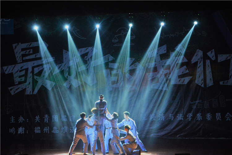 最后的节目是经济与法学系两委带来的表演“鬼步舞”和合唱《永不言败》。在 “经法辉煌”的呐喊声中,“班委们”们走上舞台,“公开课”就此落幕。