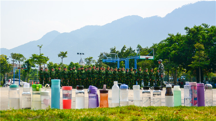 各色各样的水杯,也是军训不可少的一部分 詹洋洋/摄