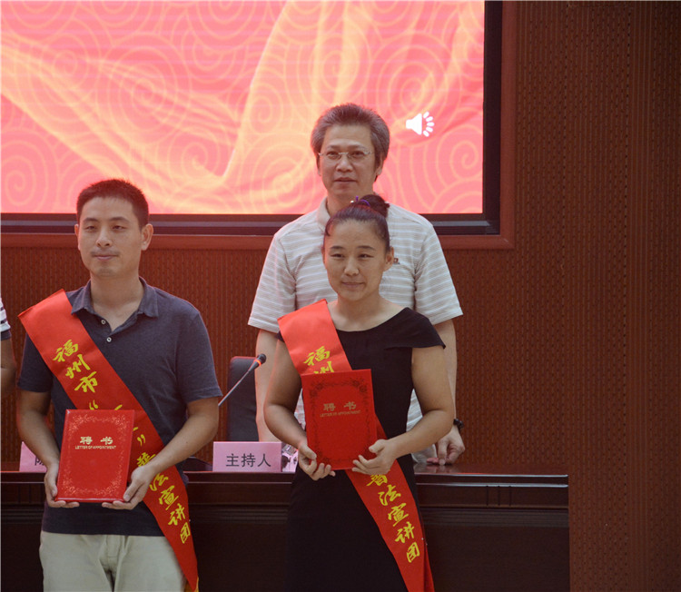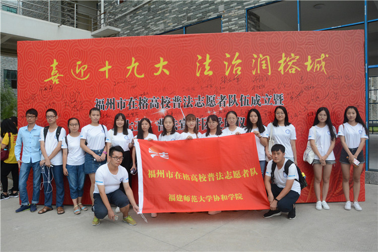 “我是新时代大学生,我决心忠于宪法和法律、学法守法、知法护法、传播法律观念,弘扬法治精神……”10月13日,由中共福州市委宣传部、福州市司法局、福州市依法治市领导小组办公室主办的在榕高校普法志愿者队伍成立暨“七五”普法宣讲团受聘仪式在江夏学院举行,学院经济与法学系15名学子受聘为福州市高校普法志愿者,参加聘任仪式的,还有来自福州大学、福建师范大学、福建农林大学等九所高校的学生志愿者。