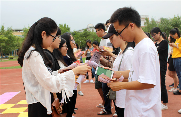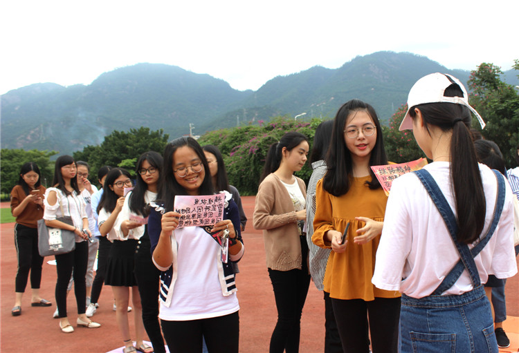 “‘四个自信’:道路自信、理论自信、制度自信、文化自信;反腐‘三清’新目标:干部清正、政府清廉、政治清明……”文化产业系2016级汉语言文学二班的杨敏琼正低头背诵着党的十八大精神要点,旁边的计时员正拿着秒表记录着时间。10月16日下午,该班在福建师范大学西区田径场开展了以“青春喜迎十九大,不忘初心跟党走”为主题的团日活动。