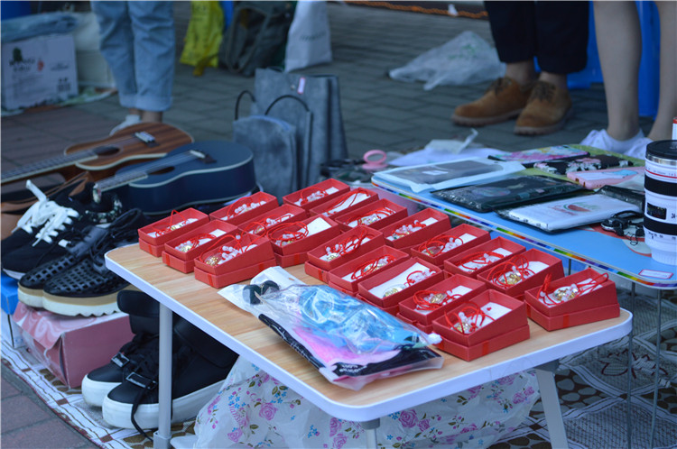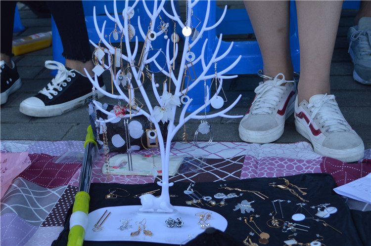 此外,手工编制的挂饰、鹿角底座上的“耳环树”、“古董”NOKIA智能机、迷你的电熨斗、益智玩具“拼豆”等商品,也受到大家喜爱。“跳蚤市场的商品物美价廉,绝对是一次物超所值的购物体验,希望活动可以多多推广!”来自文化产业系2017级产品设计专业的陶弘锦看着自己的战利品,满意地笑了。