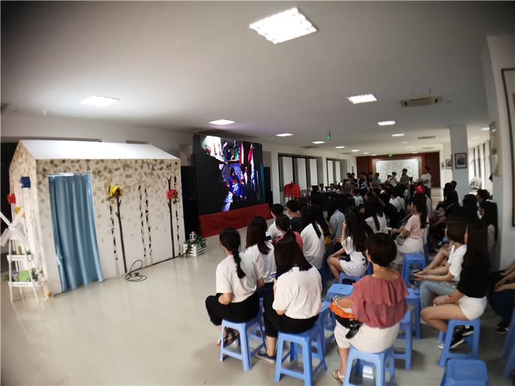 分享会上,师生一同观看视频《福州版梦想改造家:一群协和学子给二胎妈妈的礼物》。文化产业系2011届校友、《海峡都市报》摄影记者黄启鹏,与妻子、文化产业系2014届校友、烁空间建筑工程设计总监蓝峰还一起通过手机连接荧屏,带领现场观众走进1:1还原的蜗居样本房,展示蜗居改造后的内部构造。