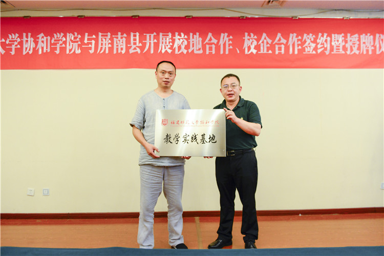 5月24日至25日,福建师范大学协和学院院长张华荣、院党委常务副书记黄俊兴带领着经济与法学系两支大学生创业团队一同前往宁德市古田县和屏南县,实地调研当地特色产业,开展项目调研和合作对接,并与两地政府和相关企业等产业升级问题进行探讨,并签订合作协议,校地企“契约式联姻”共建教学实践基地,探索独立学院培养应用型人才,与地方“共同发展,校地双赢”的新路径。