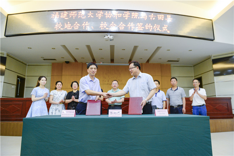 24日下午,福建师范大学协和学院与古田县校地合作、校企合作签约仪式在古田县政府大楼会议室举行,古田县常务副县长王国淑,古田县发改局、经信局、商务局、农业局、食用菌产业局等政府部门负责人,协和学院院长张华荣、院党委常务副书记黄俊兴,经济与法学系领导出席。古田县常务副县长郑国淑及各部门负责人提出了当前古田县在农业面临保险难、食用菌产品同质化现象严重等问题,引发双方对当地优势企业转型升级的探讨,并达成合作意向。张华荣院长与郑国淑副县长签署校地共建协议,与福建古田药业有限公司、古田县天宸农业开发有限公司签署校企合作协议,并为教学实践基地揭牌。