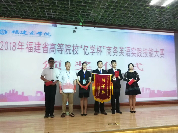 5月26日下午,从福建省高等院校“亿学杯”商务英语实践大赛赛场上传来喜讯,由外语系学子吴辰郁、施贤明和杨醉容,指导老师林妹妹和史伟明组成的参赛队从众多高校中脱颖而出,荣获特等奖。
