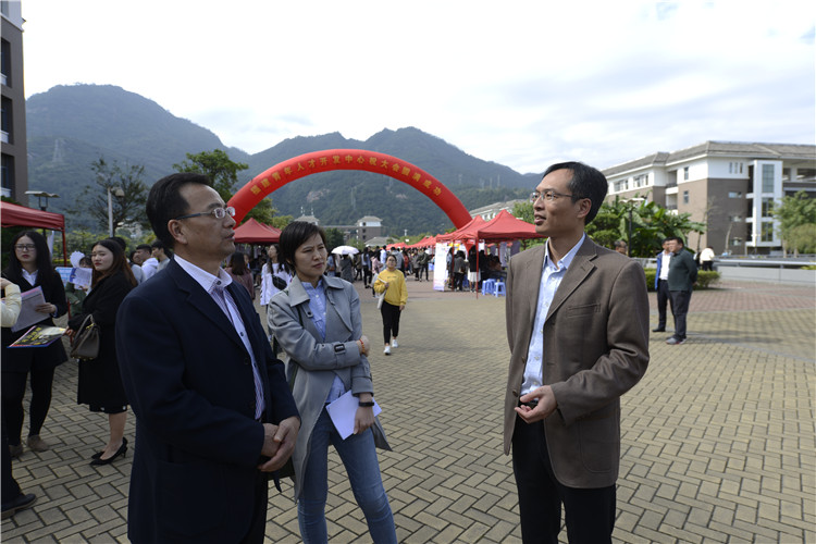 福建青年人才开发中心陈增华主任与院党委副书记陈晓斌来到现场指导学生应聘 杨竞雯/摄