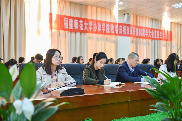 12月18日上午10时,庆祝改革开放40周年大会在北京隆重举行,习近平总书记发表重要讲话,强调要把新时代改革开放继续推向前进,为实现“两个一百年”奋斗目标、为实现中华民族伟大复兴的中国梦而不懈奋斗。福建师范大学协和学院师生在会议室、报告厅、教室、宿舍楼等多个会场,通过电视、网络等方式收看大会直播。