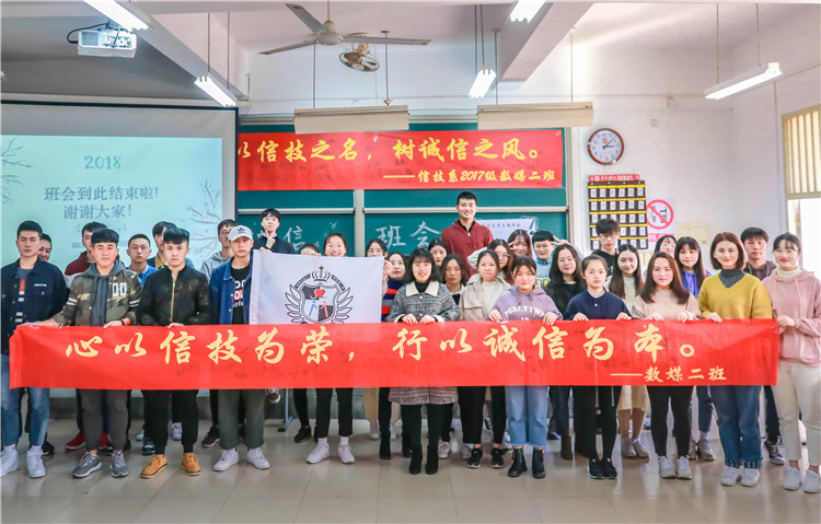 信息技术系2017级数媒二班“以信技之名,树诚信之风”主题班会合影 何旭辉/摄