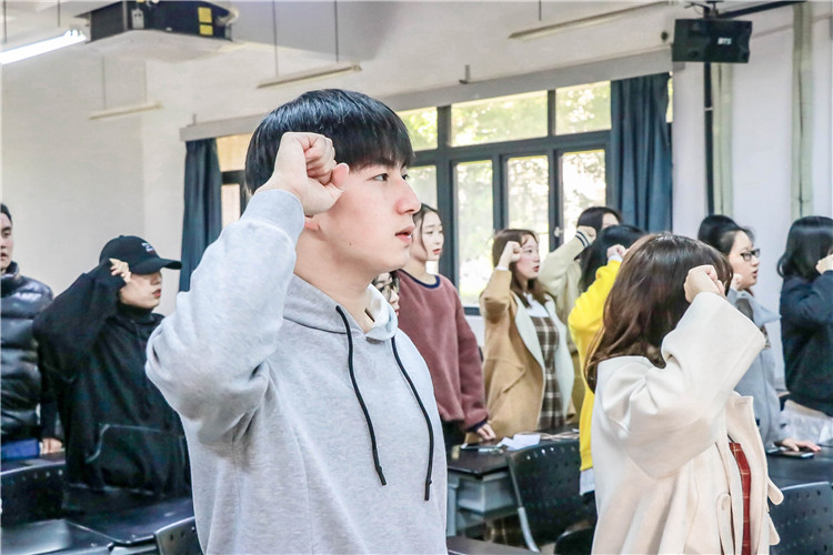 同学们起立宣誓展现考试不作弊的坚定立场 何旭辉/摄