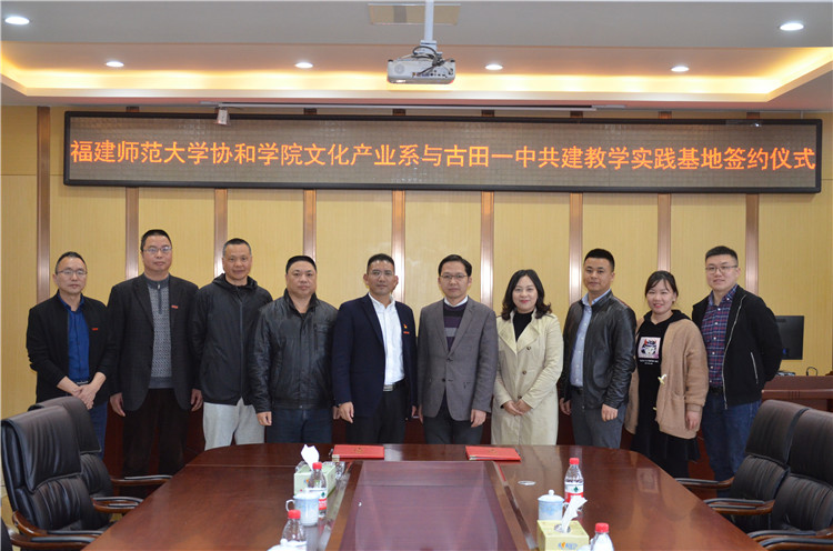 3月26日下午,福建师范大学协和学院文化产业系与宁德古田一中共建教学实践基地签约仪式在该校会议室举行,古田一中、文化产业系领导及相关教师出席签约仪式。