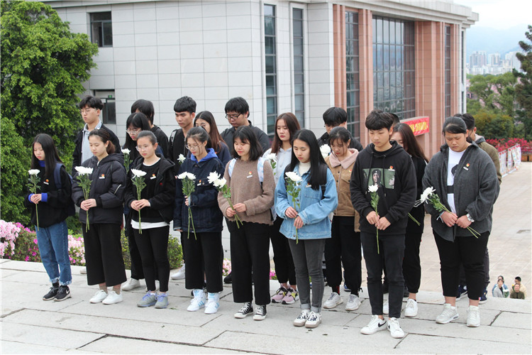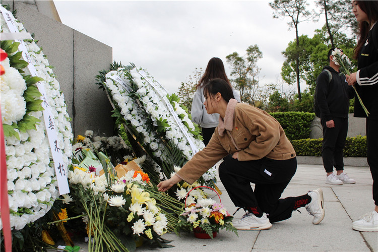 信息技术系学子在烈士墓碑下献花,缅怀先烈 陈子屹/摄