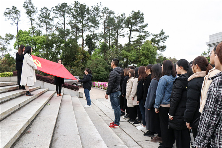 在烈士陵园里,师生们学习了园内革命先烈的英雄事迹和为国献身的精神,向革命烈士们敬献花篮并行礼鞠躬,缅怀革命先烈,并重温入党誓词,在纪念碑前再次庄严宣誓,坚定“不忘初心,砥砺前行”的决心。