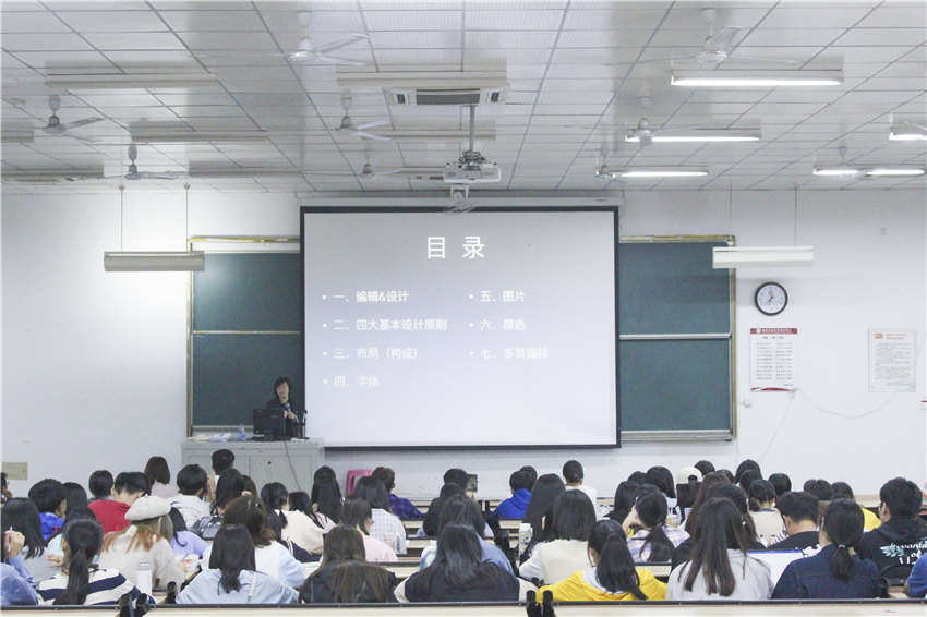 “这堂讲座令我受益匪浅,让我对设计产生了兴趣。不仅学习到了图片与文字的搭配技巧,还对设计理论方面有了更深的了解。”讲座结束后2018级文化产业系汉语言文学专业王晨霞同学说道。