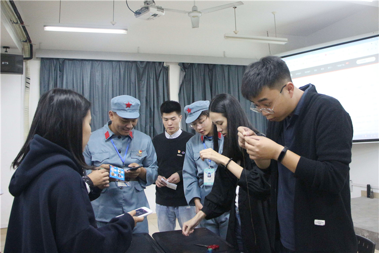 活动以历史重大事件为背景,分为开国大典、抗美援朝、乒乓外交、文工团排练、重走长征路,“看图话事件”活动六个环节。活动过程中,由信息技术系党总支成员组成的学“习”宣讲团根据不同的时代背景在各环节做主题宣讲。活动参与者们在享受各环节游戏的过程中,同时深刻学习习近平新时代中国特色社会主义思想的深刻内涵与重大意义。