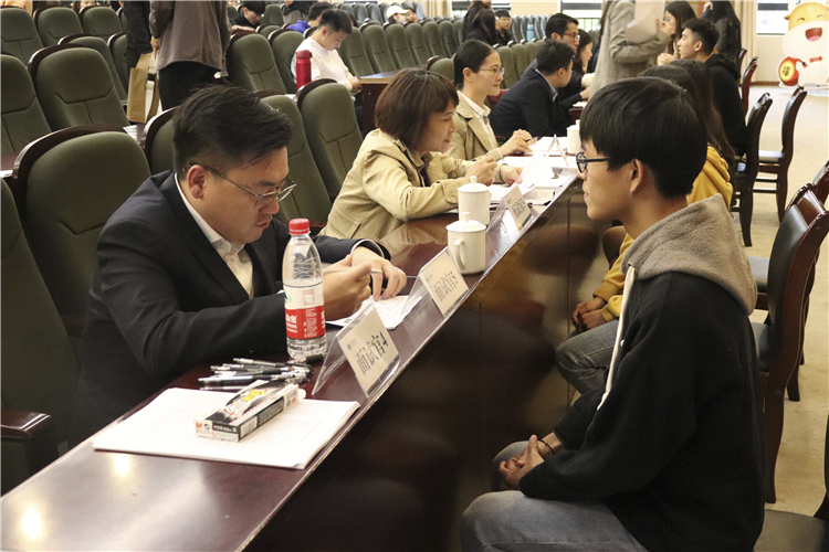 宣讲会结束后,部分感兴趣的同学在现场进行了华福证券福州分公司的招聘面试。