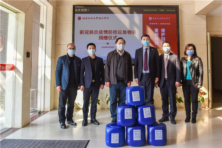 日前,福建省政协民族宗教委员会副主任岳清华博士一行莅临福建师范大学协和学院,向学院捐赠包括30桶消杀液、2400个一次性口罩在内的新冠肺炎疫情防控应急物资,助力学院疫情防控工作。