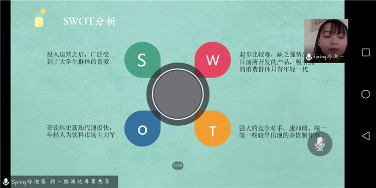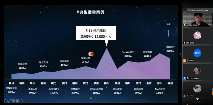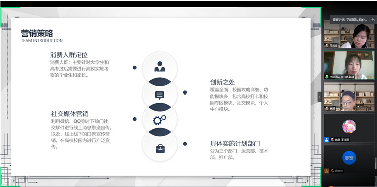 参赛团队通过屏幕共享PPT来展示项目的主要内容,评委们针对参赛项目的创业实践情况、创新能力以及电子商务的关联度等方面进行综合评价和打分。最终,《宿友服务》《宅小蜜》《小芒星球》等3个项目荣获一等奖。
