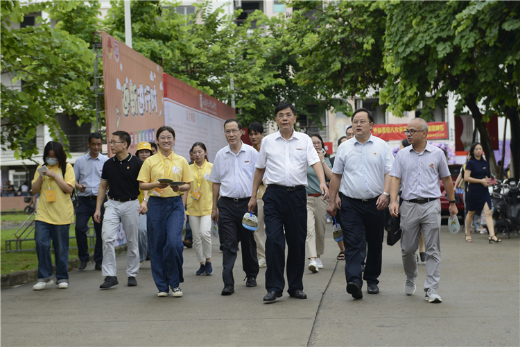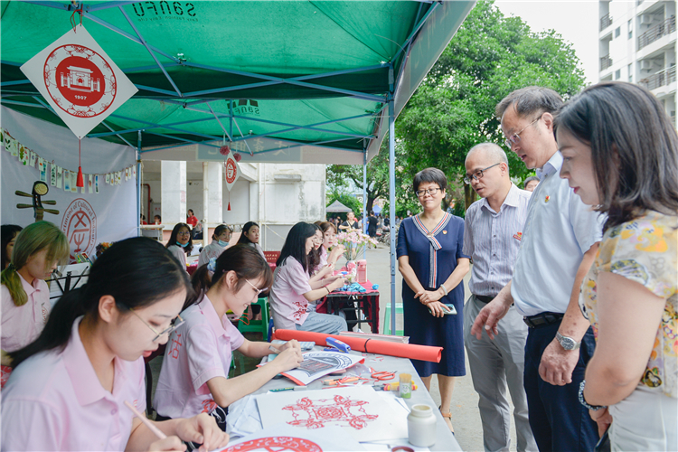 国际教育学院设置了办学特色和校园文化主题展架,让新生第一时间直观了解院情;管理学系迎新点,虚拟3D设备轮番展示卡通人物、院徽、“一声管理、一身荣耀”字样等欢迎新生;国际商学系以卡通形象“茄宝”为主体将迎新点布置得颇有特色;外语系装饰一新的“青春飞扬 外语翱翔”手绘主题宿舍楼文化墙清新醒目;经济与法学系“迎新跑道”带领新生回忆疫情之下非常之年经历的重大事件……领导们饶有兴致一一观看、体验,并频频点赞。文化产业系中国风设计、学子演奏古典乐器、表演剪纸、书法等非遗技艺;信息技术系展示各类科技作品和学科竞赛成果,院领导肯定办学成效和专业特色,并鼓励学子通过参加学科竞赛等提升专业综合水平。