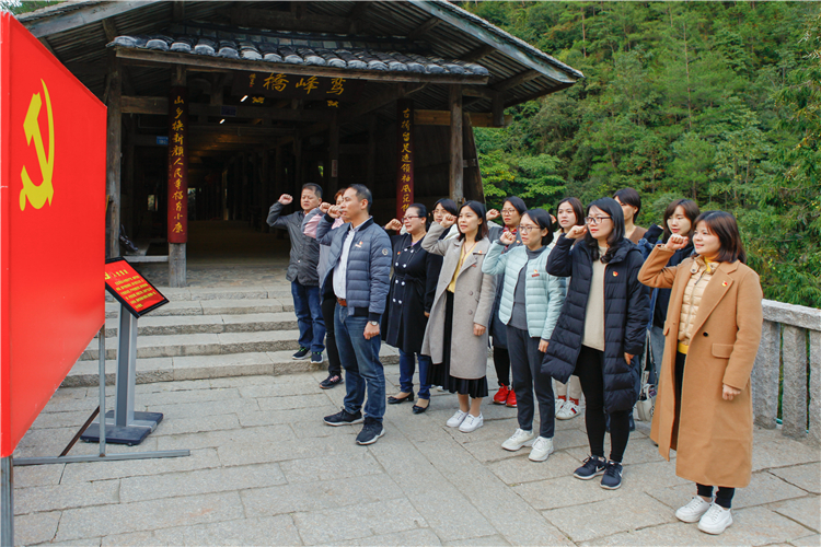 全体党员在当地党员的带领下,重走习近平总书记当年“一进下党”时所走过的“党群连心路”,重温习近平总书记“冒着危险、披荆斩棘、徒步进山”、当地百姓“箪食壶浆”的情景。在难忘下党主题展,党员们聆听习近平总书记当年披荆斩棘、跋山涉水三进下党探民情、访民忧、解民困的精彩故事,实地感受习近平总书记在宁德期间的艰辛探索和实践经历,切身体会到习近平总书记始终如一的为民情怀和执着坚定的赤子初心。在鸾峰桥,全体党员重温入党誓词,坚定了为共产主义奋斗的初心。