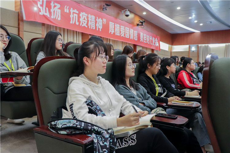 榜样力量,传承爱国精神。艾迪校友简洁而有力的语言深深感染了在座的莘莘学子,聆听报告会的同学们感受良多。管理学系2017级财务管理专业学生潘祯莹在艾迪讲述抗疫故事时热泪盈眶,作为学生党员发展对象的她说道:“在今后的学习上、工作中我会更加努力,使自己有能力去帮助更多需要的人,实现自己的人生价值。”