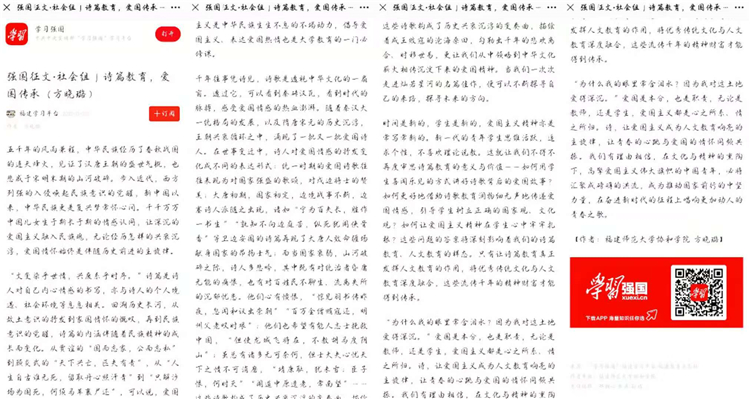 11月15日,学习强国刊发方晓璐老师文章《诗篇教育爱国传承》。