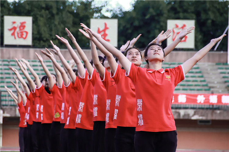 外语系学子们为运动健儿加油喝彩 陈一健/摄