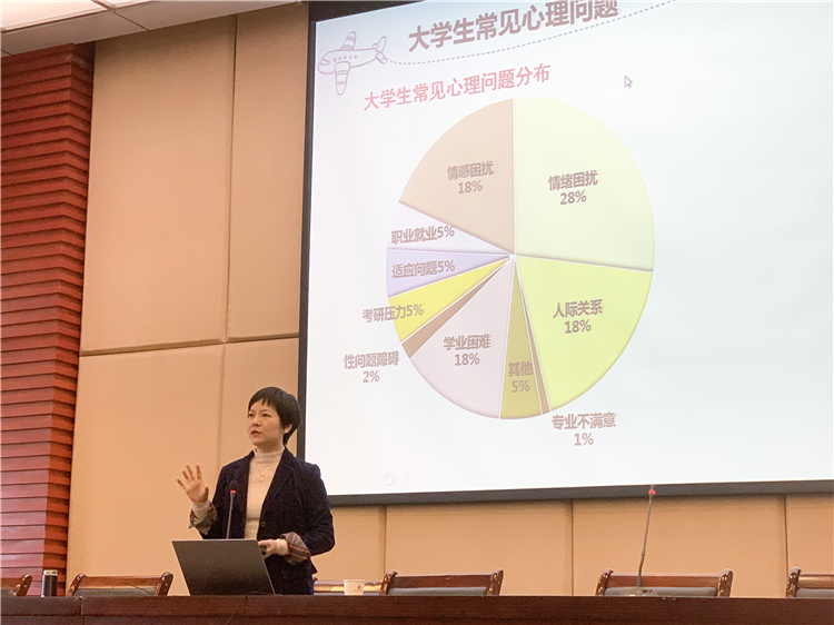 潘曦教授分别围绕心理问题的定义、心理问题的识别、心理问题的评估及心理问题的处理四个方面进行讲解,让同学们对于大学生常见心理问题有了较全面的认识,提高了宿舍心理信息员作为大学生心理健康“守门员”的责任意识。