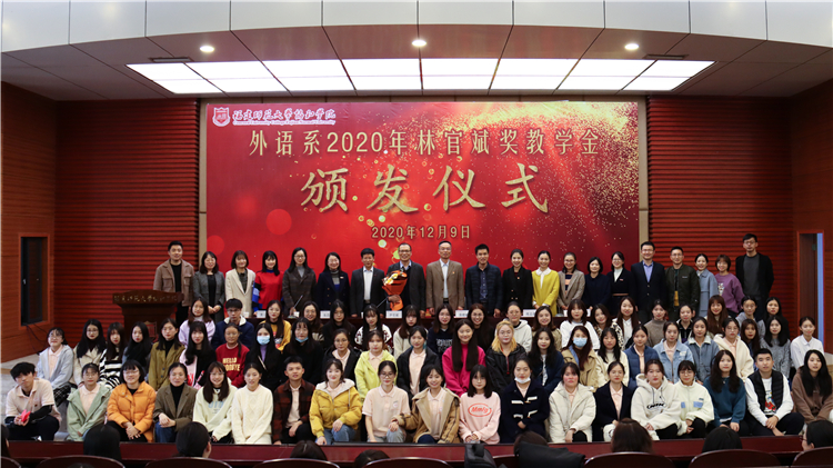 在过去7年设立“林官斌奖助学金”基础上,今年又增设立“林官斌奖教基金”。2020年“林官斌奖教基金”获得者廖晓丹老师代表全体获奖教师发言:“感谢林官斌先生一直以来的支持和帮助,这份荣誉不仅是物质上的,更是对外语系人才培养成效的肯定,同时我们也将会继续不忘初心、履职尽责、教书育人。”