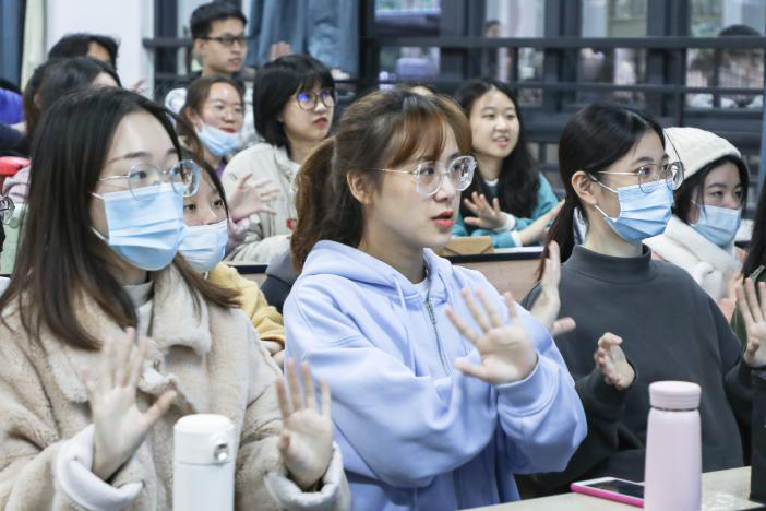 讲座中,周玫慧老师首先从早期教育、入户指导、早教指导师、入户(社区)指导专业学习等概念出发进行理论解析,阐述了早期教育指导师的从业基本要求、专业要求及活动准备等内容。随后,周老师在理论讲解的基础上,结合自身育儿经验与入户指导经历,通过实例与实操进行示范引导,带领在场师生通过手指操、玩教具操作、韵律游戏等方式体验早期教育主题活动形式。让学子们明晰了入户早期教育的活动流程与内容,丰富了早期教育指导的认知与了解,提升了专业素质。