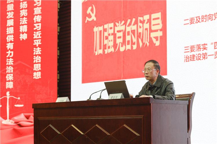 张华荣院长在总结时指出,黄岩生副厅长所作的专题报告,理论与实际相结合、历史与现实相结合,深入浅出,旁征博引,为与会人员带来了一场生动的法治课程。他强调要认真学习、深刻领会,进一步吃透习近平法治思想的基本精神、把握核心要义,转化为生动实践,贯穿于法治建设工作的全过程和各方面。他希望,广大师生把法治意识、法治思维、法治观念的培养作为一项终身学习的重要内容,做尊法、学法、守法、用法的模范和法治精神的传播者、实践者。