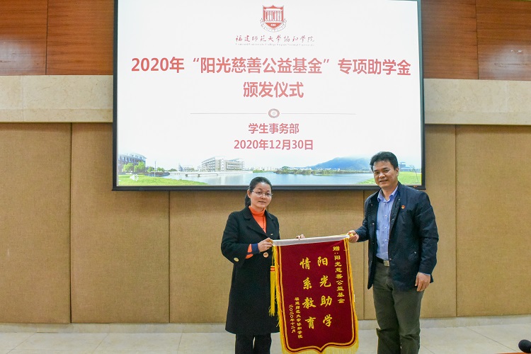 12月30日下午,福建师范大学协和学院 2020年“阳光慈善公益基金”专项助学金颁发仪式在第六会议室举行,学院16名品学兼优的家庭经济特别困难学生获资助。