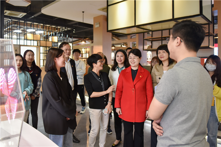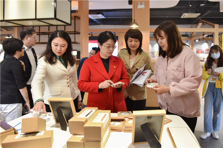 陆菁副主席参观女大学生创业实践基地成果展 杨竞雯/摄