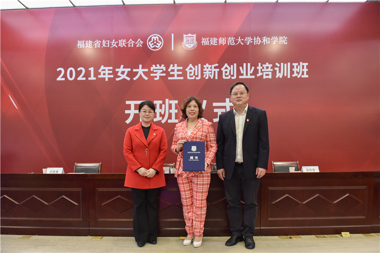 3月31日下午,由福建省妇联与福建师范大学协和学院联合举办的2021年院女大学生创新创业培训班在福建师范大学协和学院学术报告厅开班。福建省妇联党组成员、副主席、一级巡视员陆菁,福建省妇联发展联络部部长陈婉萍、四级调研员徐西朋,福建奋安集团总裁黄秀华女士,福建师范大学协和学院领导张华荣、应贵勇、张鹏程、王进安、杨林香、张娴及相关部、系负责人,培训班学员等共同参加了开班式。仪式由协和学院党委常务副书记应贵勇主持。仪式前,福建师范大学党委副书记、协和学院党委书记陈晓红会见了陆菁一行。