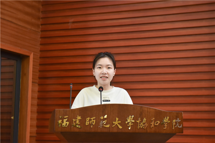 女大学生施欣如代表培训班学员发言 杨竞雯/摄