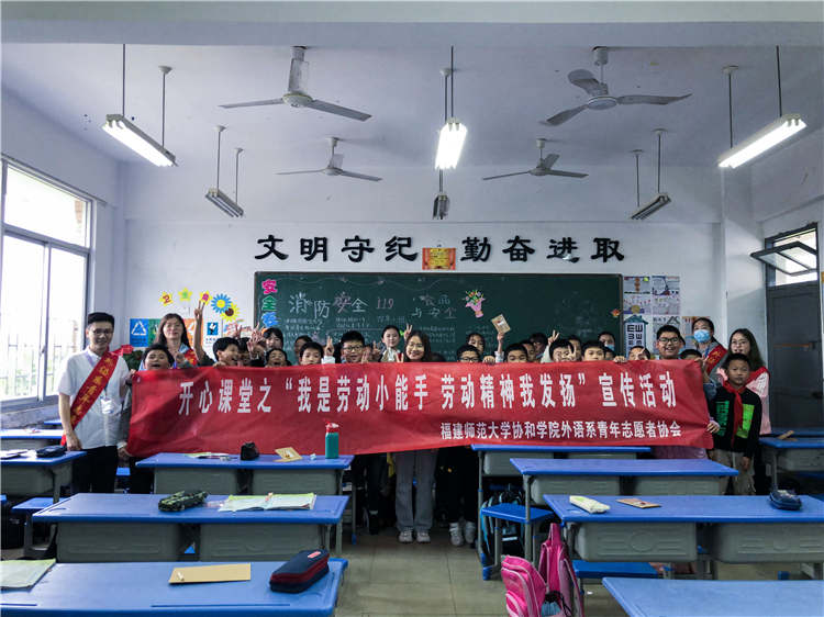 为庆祝建党百年,积极践行为民办实事的精神,4月28日下午,外语系青年志愿者协会前往闽侯县上街岐安小学开展以“我是劳动小能手,劳动精神我发扬”为主题的开心课堂志愿服务活动。
