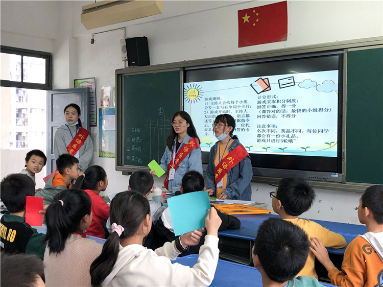 活动中,志愿者们向小学生们介绍了劳动节的由来和意义,讲述了王进喜的铁人精神和申纪兰的模范事迹。随后,志愿者通过“我是劳动小能手”“举举高”等小游戏,以寓教于乐的方式为小学生们教授与家务劳动相关的英文单词,同时呼吁同学们帮父母做一些力所能及的家务,将劳动精神付诸于日常生活中。