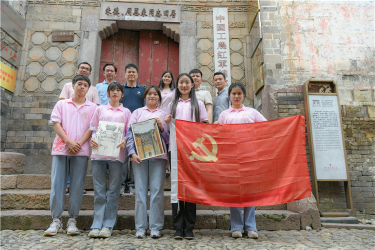 泰宁县城岭上街,又被称为“红军街”,是一条明清风格的古巷,2004年,被列入全国“百个红色经典旅游景区”之一,位于街头的红军东方军司令部旧址(泰宁)是福建省委党史学习教育领导小组办公室公布的100个单位党史学习教育参观学习点之一。1933年8月中旬,朱德、周恩来率领红一方面军指挥部从江西东移,经建宁抵达泰宁,入驻这里,与敌人展开如火如荼的战斗。如今,烽火已经远去,那段红色的记忆却不曾消散。同学们在这里深入了解当年的历史,通过生动的线条、绚丽的色彩绘出中国工农红军总部旧址、红军井、老墙上的革命口号,在作品中感悟那段烽火岁月,表达自己内心的崇敬之情,抒发着对党的热爱和对革命先辈的赞美。