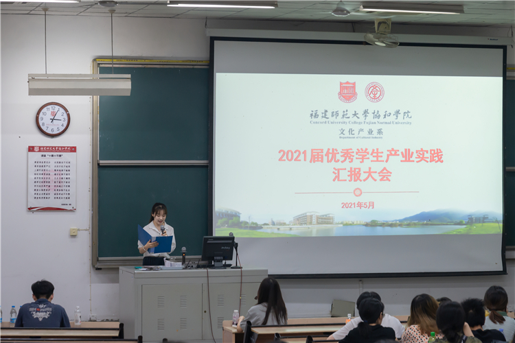 5月12日下午,文化产业系在C2阶梯教室举办2021届优秀学生产业实践汇报大会。文化产业系2017级7位同学作为各专业产业实践的优秀学生代表发言。系主任伍明春教授、全体辅导员、2018级和2020级(专升本)全体学生参加此次汇报会。