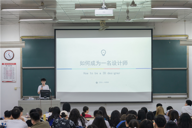 此次产业实践汇报会分享内容包括创业经历、实习经验与考研心得。拥有“室内设计师”、“咖啡师”、“摄影师”、“平面设计师”等身份,“斜杠青年”……文化产业系2017级环境设计专业苏其凡向大家介绍了他的创业历程。从开始的迷茫,到后来得同行前辈引导,专业理论知识加上几段实习的经历让他一步步走得更踏实,也更有底气。而产品设计专业的林贵禄结合个人实习经历和作品,向大家介绍了成为一位优秀设计师的必备素质及努力方向。他强调,大学四年的学习时间是宝贵的,不要轻易浪费一分一秒。
