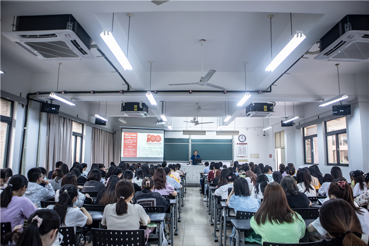 傅柒生教授从“矢志践行初心使命”、“筚路蓝缕奠基立业”、“创造辉煌开辟未来”三个方面展开,结合丰富鲜活的影像作品来梳理党的百年光辉历程。讲座中,傅柒生教授引用习近平总书记的重要讲话来勉励学生党员要充分发挥青年学生的引导和示范作用。