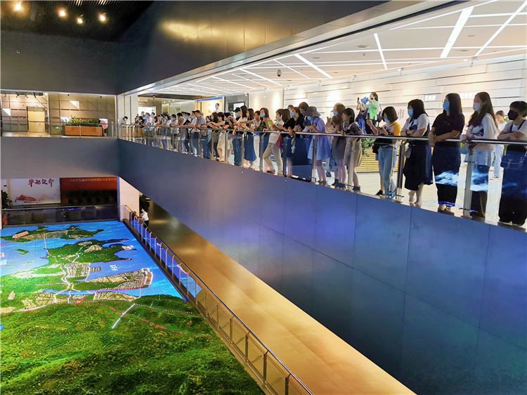 古韵名城展厅里陈列的福州版“清明上河图”仿真模型,动态呈现了历史上繁华的福州夜景和深厚的文化底蕴,给教师们留下了深刻的印象。二层看台可俯瞰福州总体规划沙盘模型,全国首创的海天一色沙盘模型秀生动演绎了福州未来的空间发展战略规划,让老师们对福州市的总体交通、产业规划、生态福州建设、未来发展定位等有了清晰而具体的认识。在旋转环幕影院,新颖的观影体验使老师们深刻感受到新时代日新月异的发展为人民生活带来的巨变,由衷感叹生活在“有福之州”的幸福感。