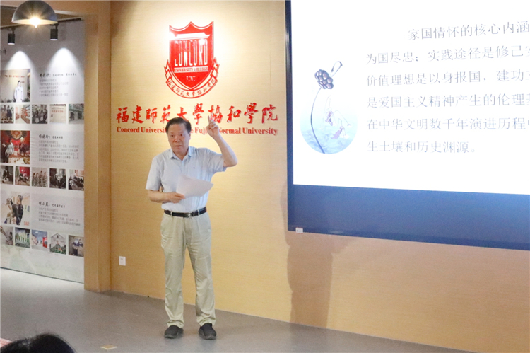 活动中,协和学院青年学生声情并茂朗诵了《永远跟党走》、林觉民《与妻书》,追忆中国共产党艰难创立和奋勇革命的艰辛历程,讴歌党领导中国人民取得的丰功伟绩,宣誓“永远跟党走”的坚强决心;福建师范大学文学院博士生导师郭丹教授分享了《周恩来十条家规》《赵一曼写给宁儿的一封信》《夏明翰写给母亲的遗书》等红色家书中所蕴涵的家国情怀;现场播放了90旬党员、抗美援朝老兵苏学老先生讲述的亲身经历。他们用最真实的情感和内心深处的声音歌颂了对共产党的淳淳信仰,号召广大青年学子自觉用先辈们的家国情怀培根铸魂、启智润心,努力成为堪当民族复兴重任的时代新人。