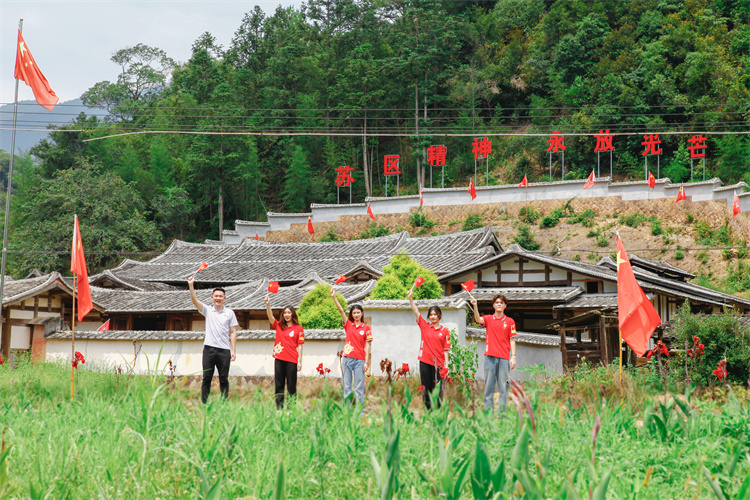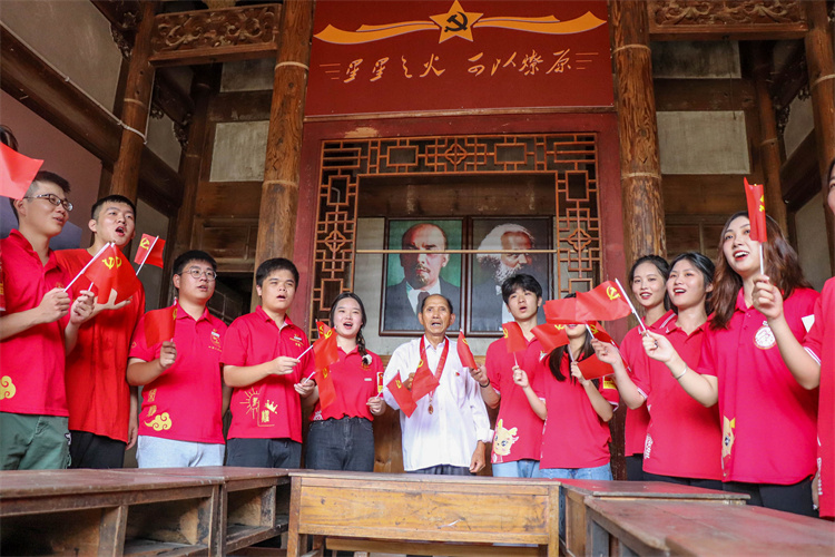 实践队前往闽赣省苏维埃政府旧址,重温先辈足迹,缅怀革命先烈,探寻历久弥新的红色精神。在老党员的讲述下,实践队重回苏维埃政府同国民党军队殊死斗争的那段艰苦卓绝的革命岁月,并在闽赣省苏维埃政府旧址的院子中,迎着党旗,重温入党誓词,共同献上红色歌曲《没有共产党就没有新中国》,用歌声来缅怀先烈,向党的百年华诞献礼。