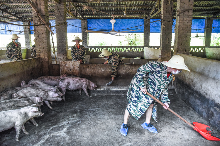 在平和县文峰镇文洋村的“猪子百家”生态实践基地,实践队队员化身“养猪倌”,与养殖猪进行了一次“零距离”接触。在参观了半自动化厂房以及无害化养殖处理设施,了解养猪整体流程、猪场运营情况后,队员们在饲养员的指导下,统一换上的工作服,将猪舍中的半干粪铲出圈外以清洁猪圈,给猪崽添加饲料,践行“劳动最光荣”的号召。随后,队员们还参观了生态蜜柚林,并在本次特色劳动实践创新创业项目负责同学林滨的介绍下,深入学习“通过将生猪产生的粪污运往化粪池,化粪池所产生的沼渣投放进蜜柚林、沼液投放至鱼塘”的现代化绿色产业链,了解循环农业模式对乡村振兴的重要作用。最后,实践队与养殖场进行了挂牌仪式,共建经济与法学系劳动教育实践基地。经济与法学系党总支书记李杰锋及相关负责人出席挂牌仪式。