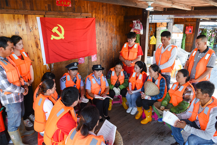 实践队携手东山县铜陵镇公安局红色宣讲队,乘船出海来到渔排上,与渔民们围坐在一起,共同阅读党史书籍,重温党史经典。宣讲民警韩亮,讲述红色党史故事,与大家一起回顾了中国共产党走过的光辉历程。此外,她还就海上通航、海上养殖的法律知识展开宣讲,为常年在海上作业的渔民“补课”。了解到养殖户常年在海上作业,很少能接受党史学习和法律知识教育,实践队队员纷纷表示要努力配合当地民警,制作相关宣传材料,将红色基因传承延伸到海上,推动党史学习教育走入基层。