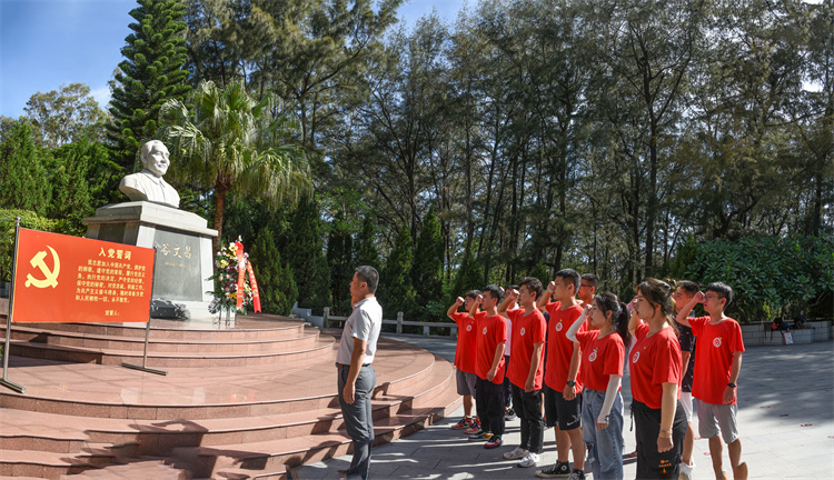 实践队还前往谷文昌纪念馆开展党史学习教育现场学习。大家顶着炎炎烈日,怀着无比崇敬的心情,向谷文昌同志塑像敬献花篮。在雕像前,鲜红的党旗下,队员们举起右手,握拳宣誓,重温入党誓词。纪念馆内,大量珍贵的历史图片、实物展台和详实的文字资料,再现了谷文昌同志带领东山人民艰苦奋斗、不畏艰难造福人民的点滴故事,展示了一个共产党人一心为公、无私奉献的高尚品德。